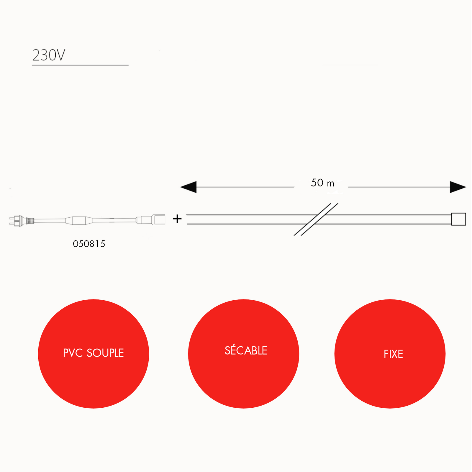 Ce cordon lumineux de 45m est sécable tous les 1m. L'alimentation est non incluse.